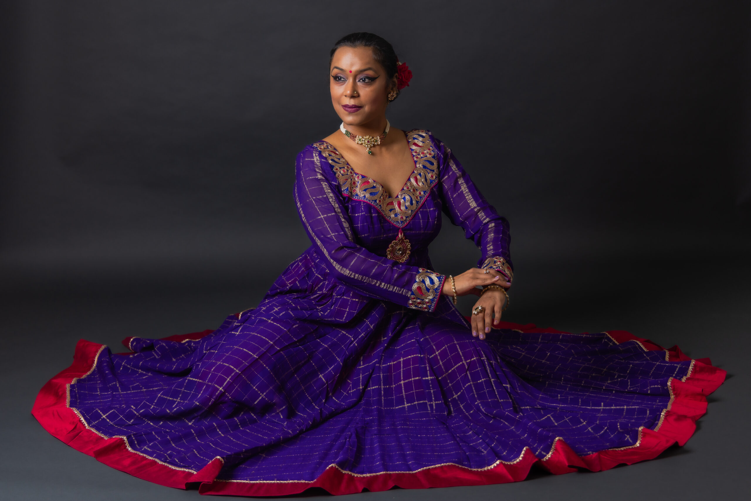 Native to North India and pronounced “Kah-tahk”- is one of the eight esteemed classical dance forms of India. Originating in Hindu temples around the 4th century BCE as a profound storytelling tradition, Kathak gracefully conveys narratives through expressive hand gestures (mudras), emotive facial expressions, intricate rhythmic footwork and fluid, graceful movements. The dance form beautifully blends poetic storytelling with precise rhythmic patterns embodying emotional depth and technical intricacy. Preserved across generations yet continuously evolving, Kathak remains a vibrant expression of India's rich cultural heritage.